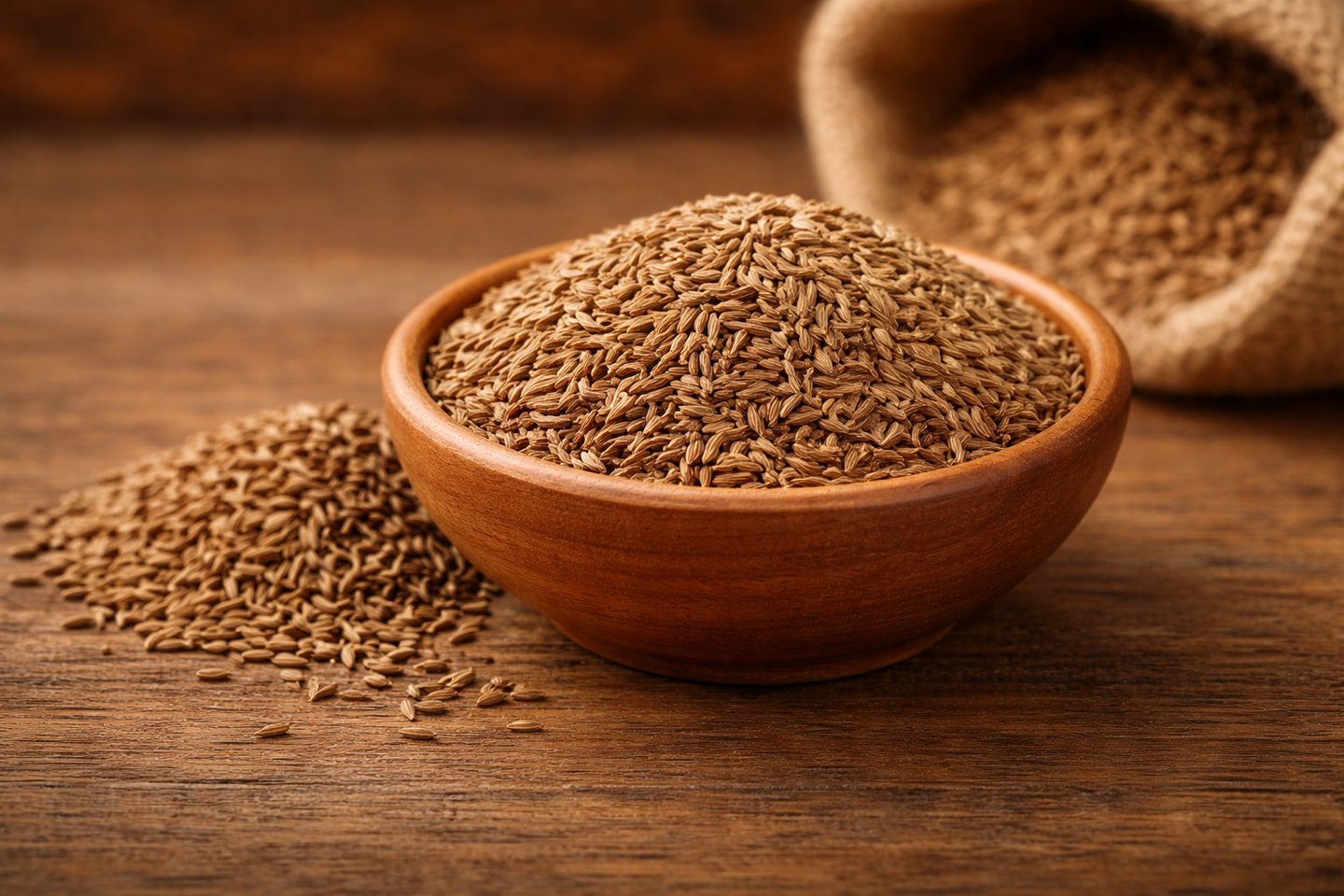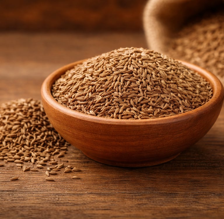 Premium quality cumin seeds with strong aroma, machine-cleaned and sortex processed for export markets.