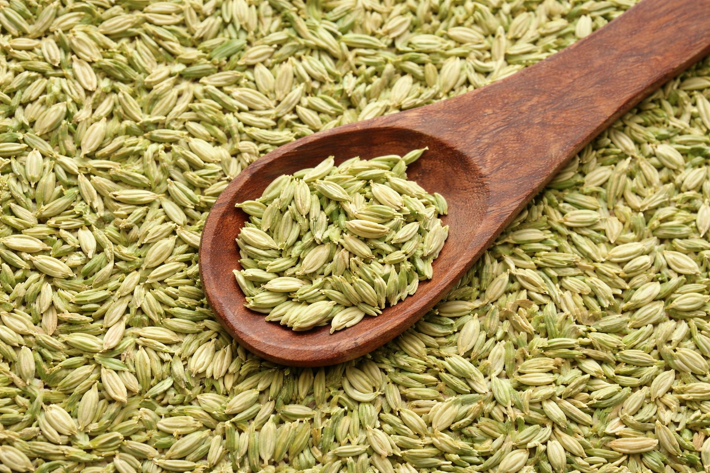 Sweet and aromatic fennel seeds commonly used in culinary preparations and herbal products worldwide.