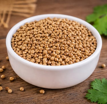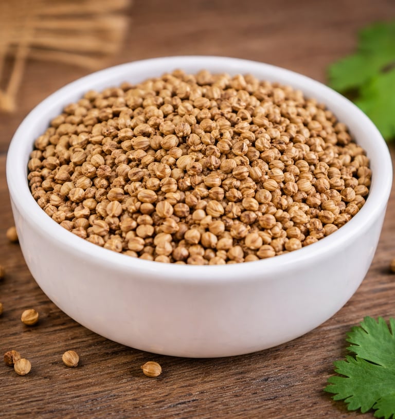Naturally dried coriander seeds valued for their mild citrus flavor and versatile culinary applications.